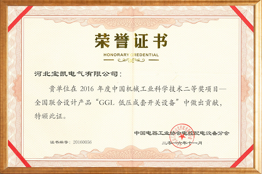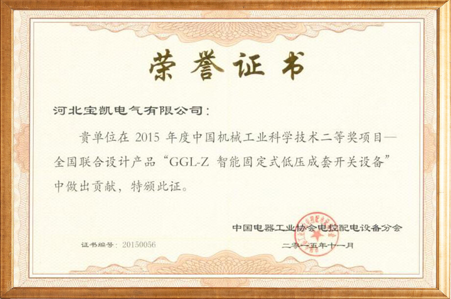 GGL-Z二等獎(jiǎng)證書