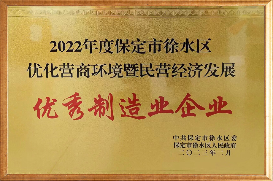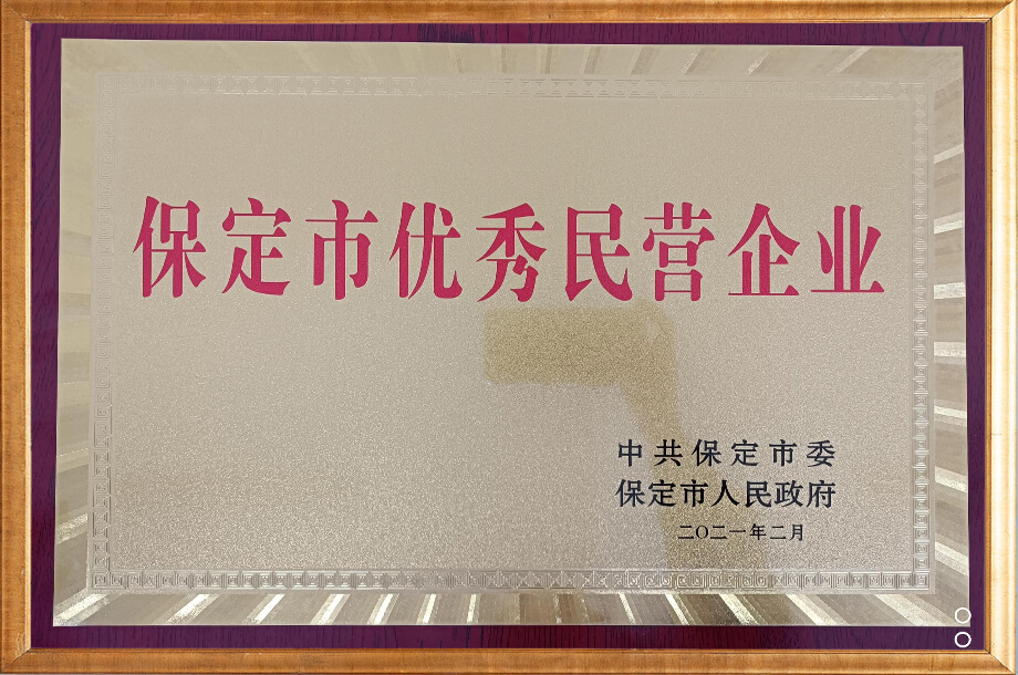 保定市優(yōu)秀民營企業(yè)證書