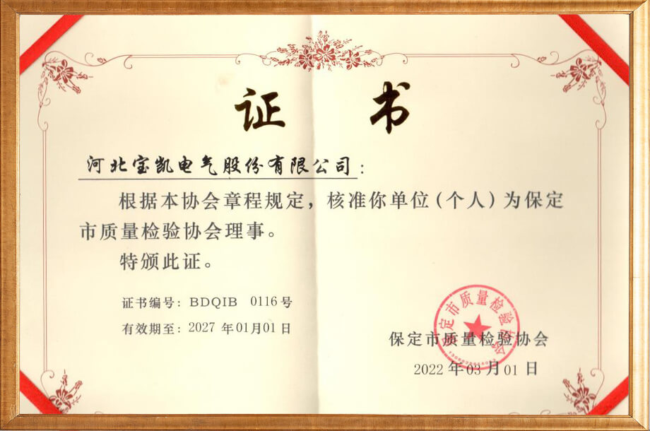 保定市質(zhì)量檢驗(yàn)協(xié)會理事2022