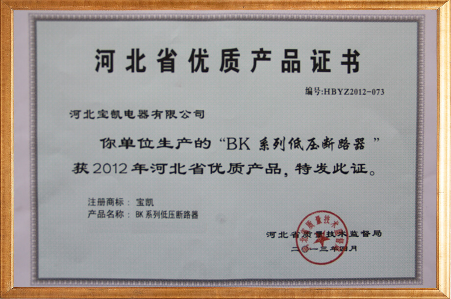 河北優(yōu)質(zhì)產(chǎn)品證書
