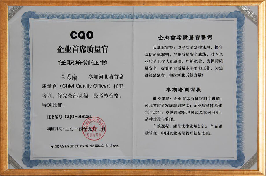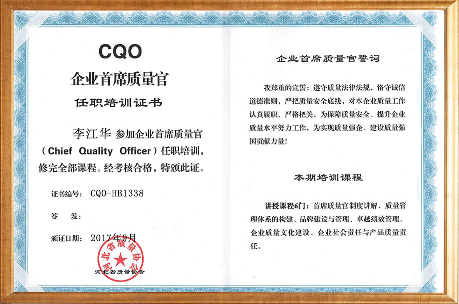 質(zhì)量官證書