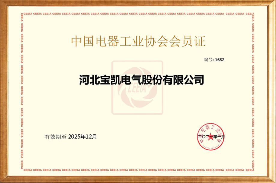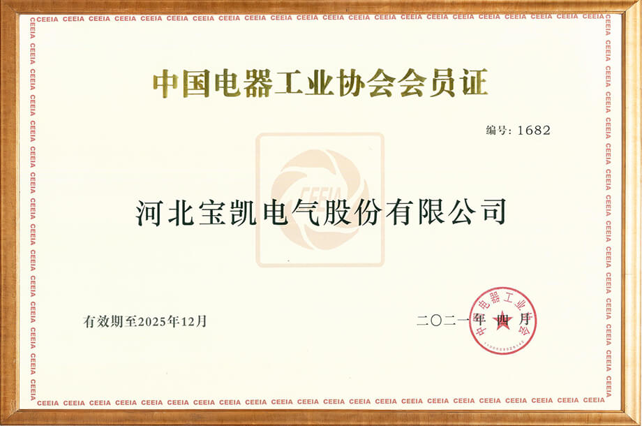 中國電器工業(yè)協(xié)會會員證2021年頒發(fā)