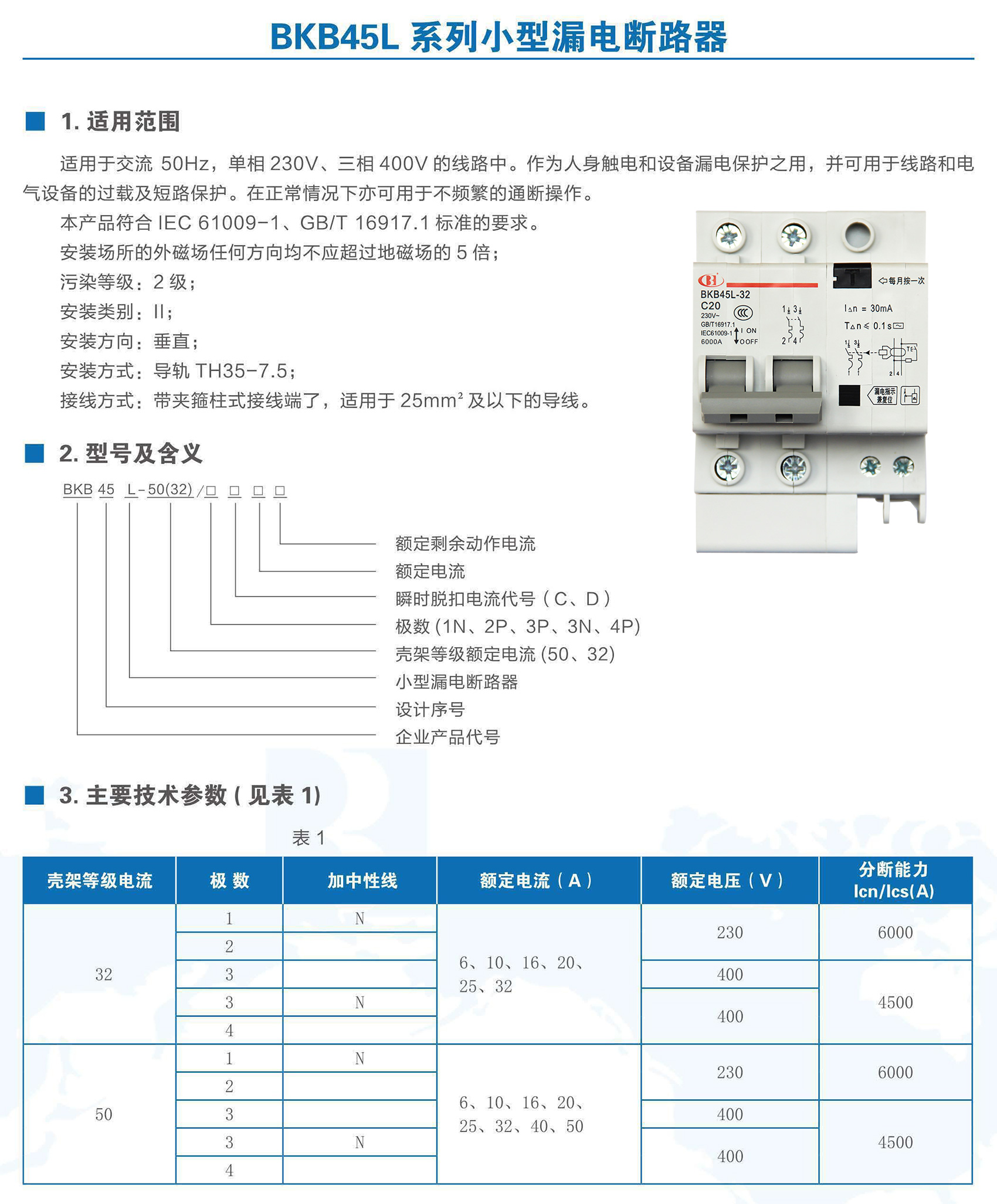 BKB45L-32N 系列帶剩余電流保護小型斷路器